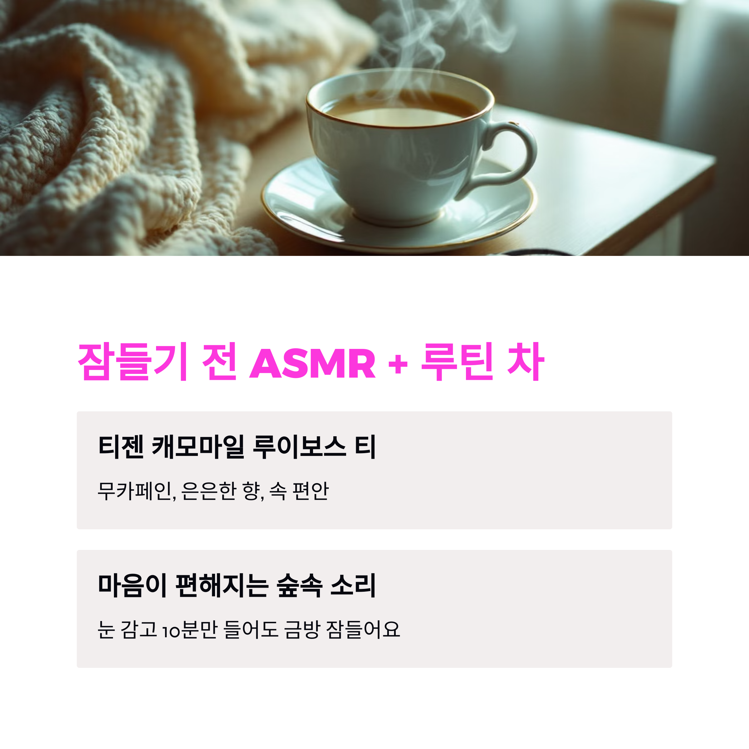 5. 잠들기 전엔 'ASMR + 루틴 차'로 마무리 ☕🌙