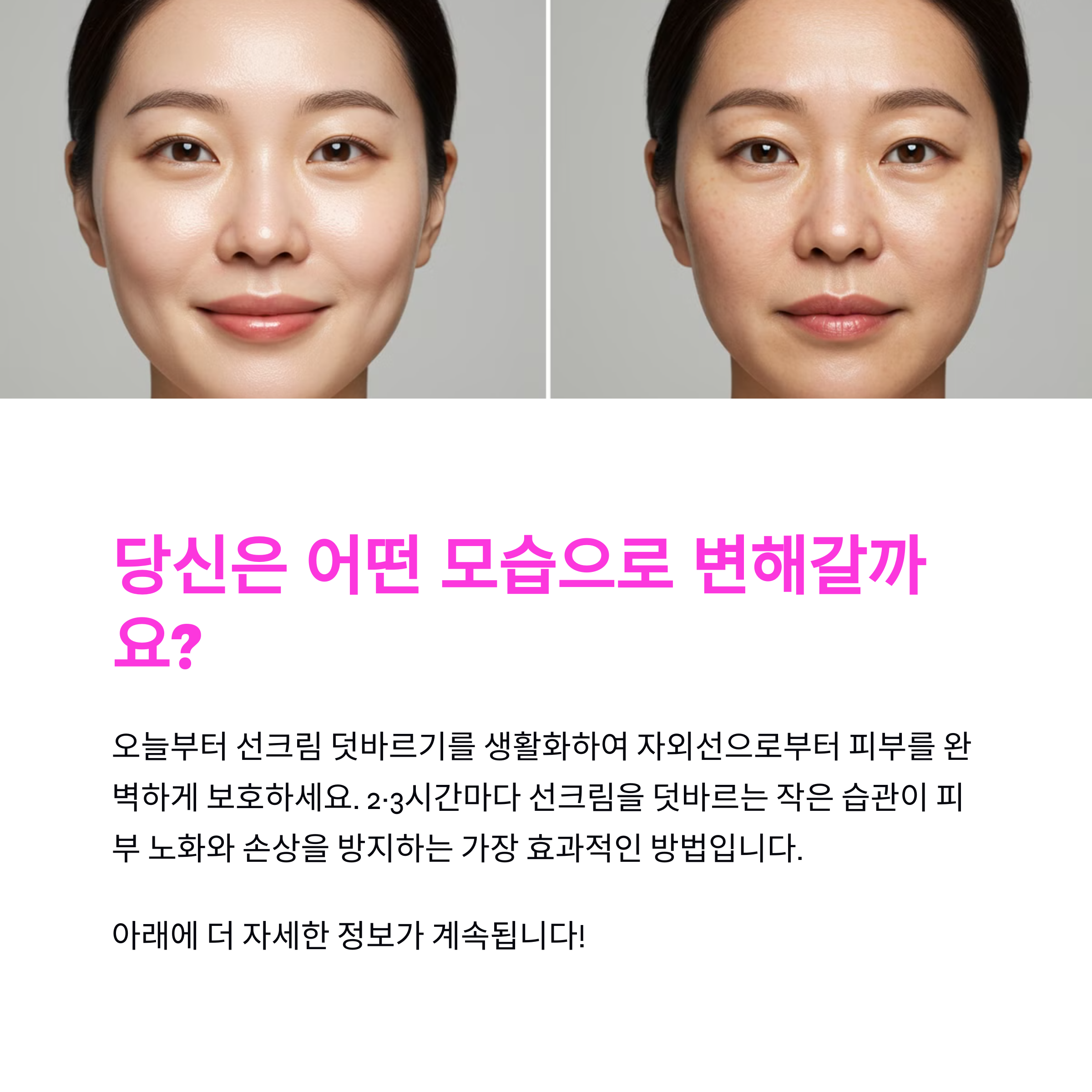 선크림은 시간이 지나면 효과가 떨어지고, 땀이나 피지로 인해 지워질 수 있어요. 자외선 차단 효과를 유지하기 위해서는 정기적으로 덧발라주는 것이 필수랍니다.