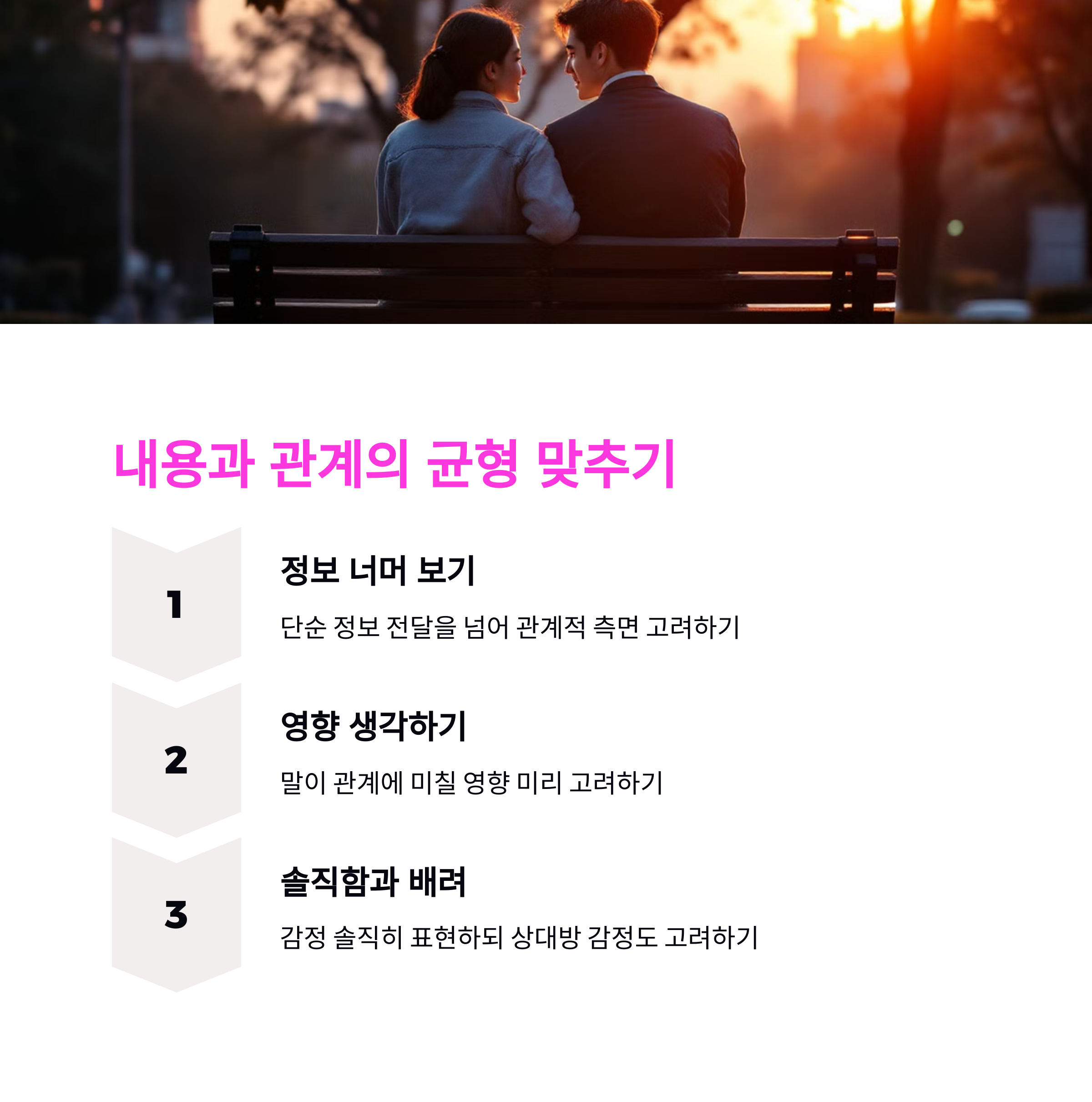 내용과 관계의 균형을 맞추면 오해와 갈등을 줄이고 더 깊은 교감을 나눌 수 있어요.