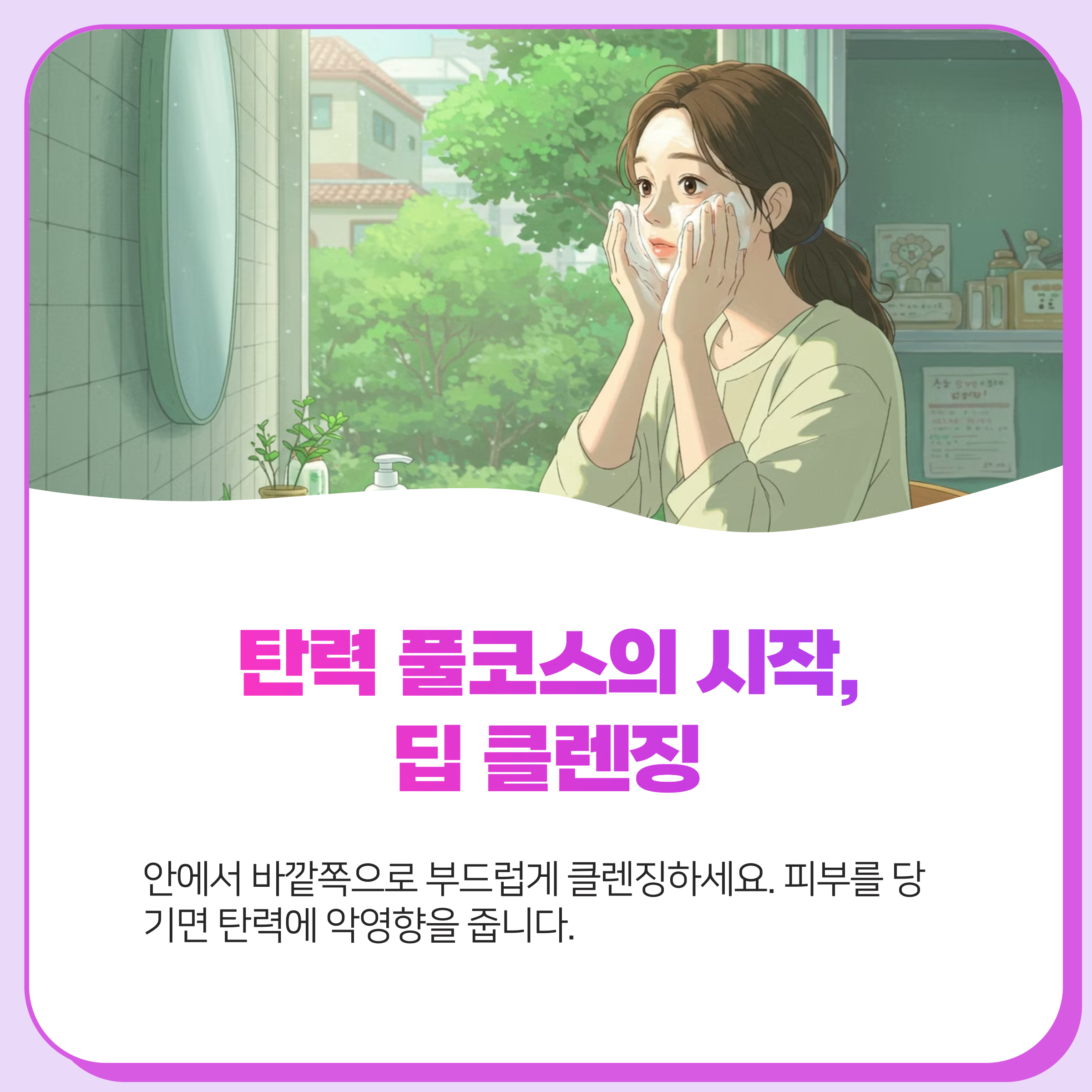 아무리 비싼 탄력 앰플도 피부가 깨끗하지 않으면 흡수가 안 된다는 사실! 클렌징은 탄력 루틴의 출발점이에요. 자극 없이 부드럽게, 안에서 바깥으로 원을 그리듯 세안하면 탄력 저하를 막을 수 있답니다.