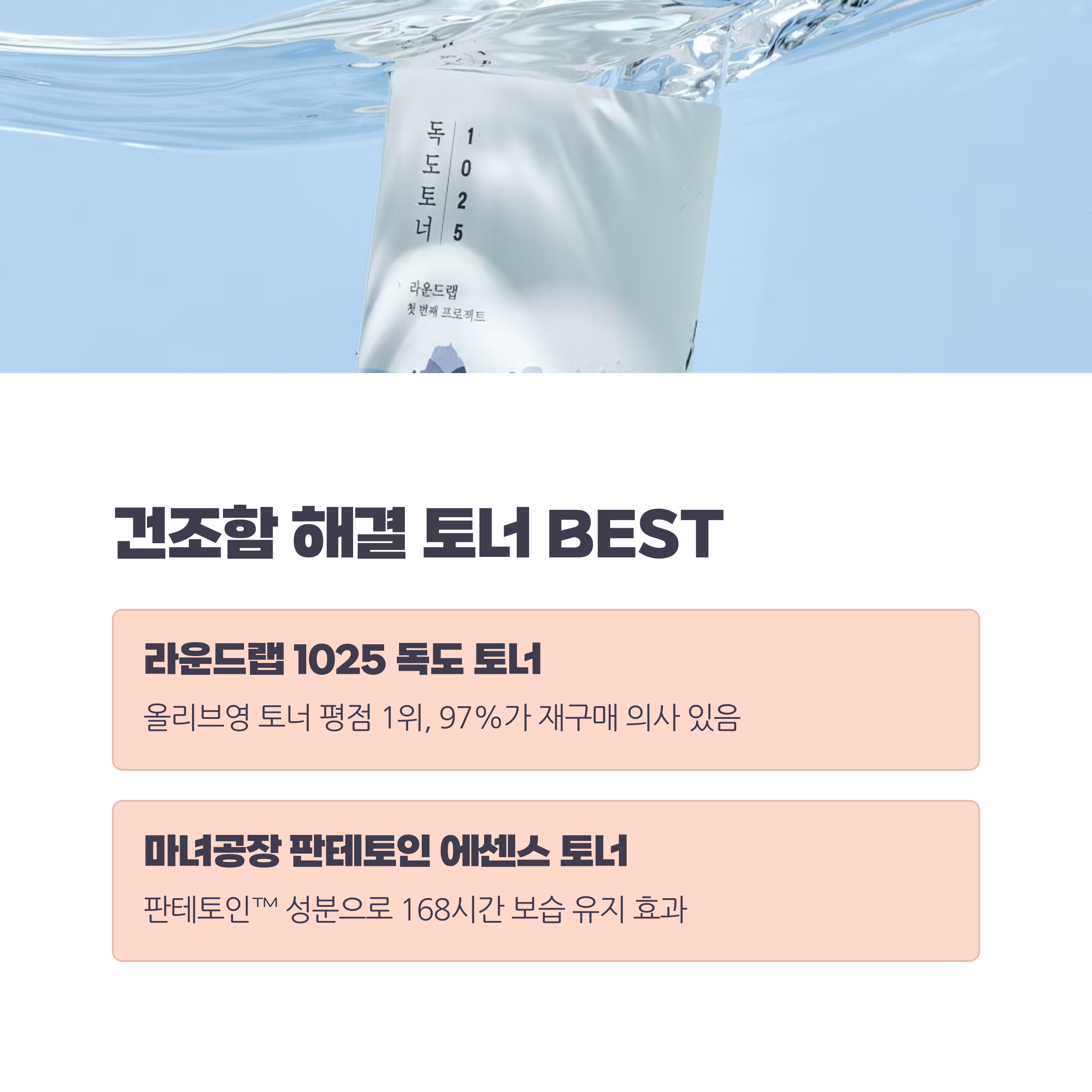• 민감성 + 건조 고민: 라운드랩 1025 독도 토너, 마녀공장 판테토인 에센스 토너