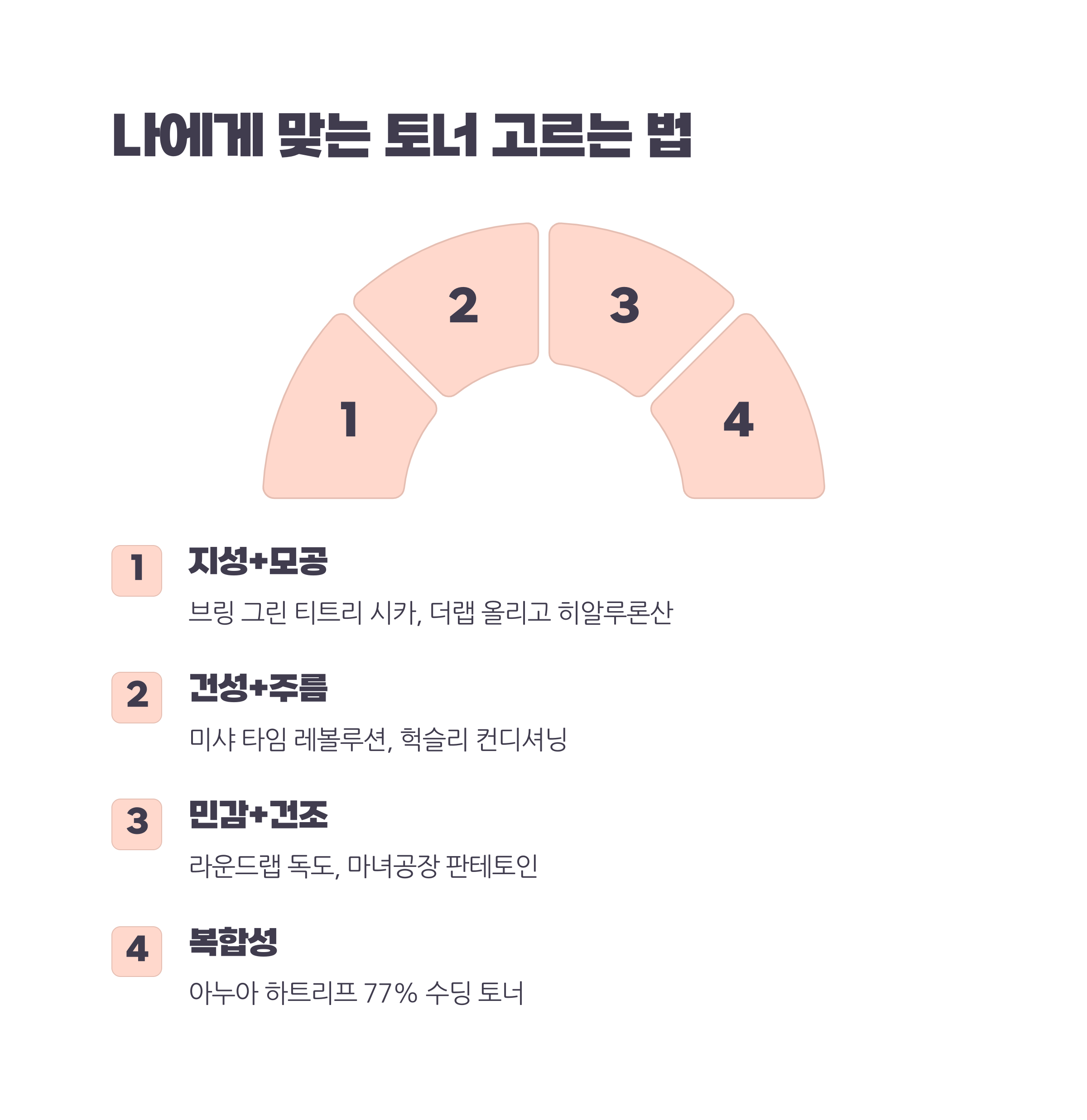 피부 타입과 고민에 따라 토너를 선택하는 방법을 정리해 드릴게요!