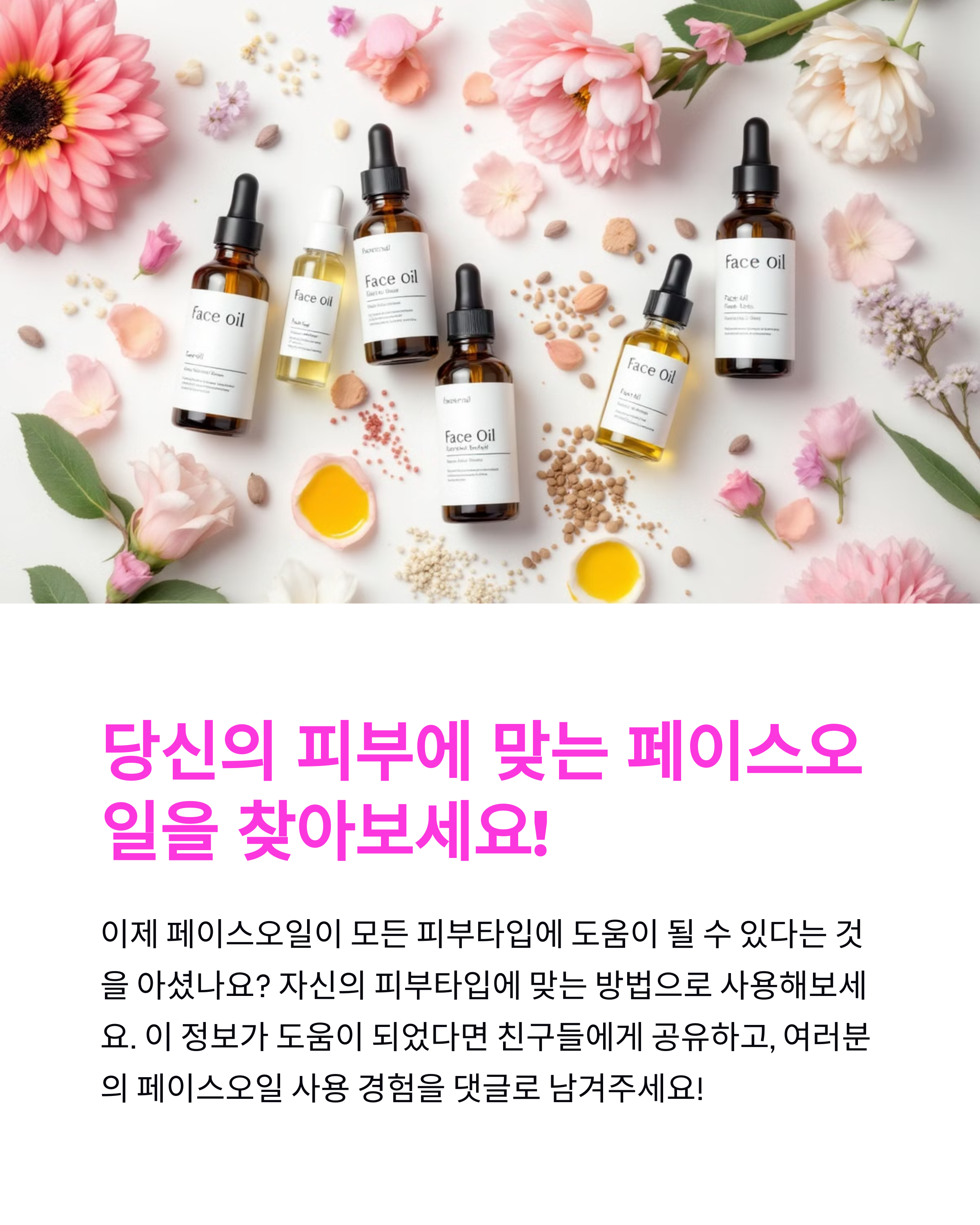 메타 디스크립션: 지성피부에도 페이스오일이 도움이 될 수 있다는 사실! 피부타입별 페이스오일 효과와 올바른 사용법을 알아보고 건강한 피부를 만들어보세요.