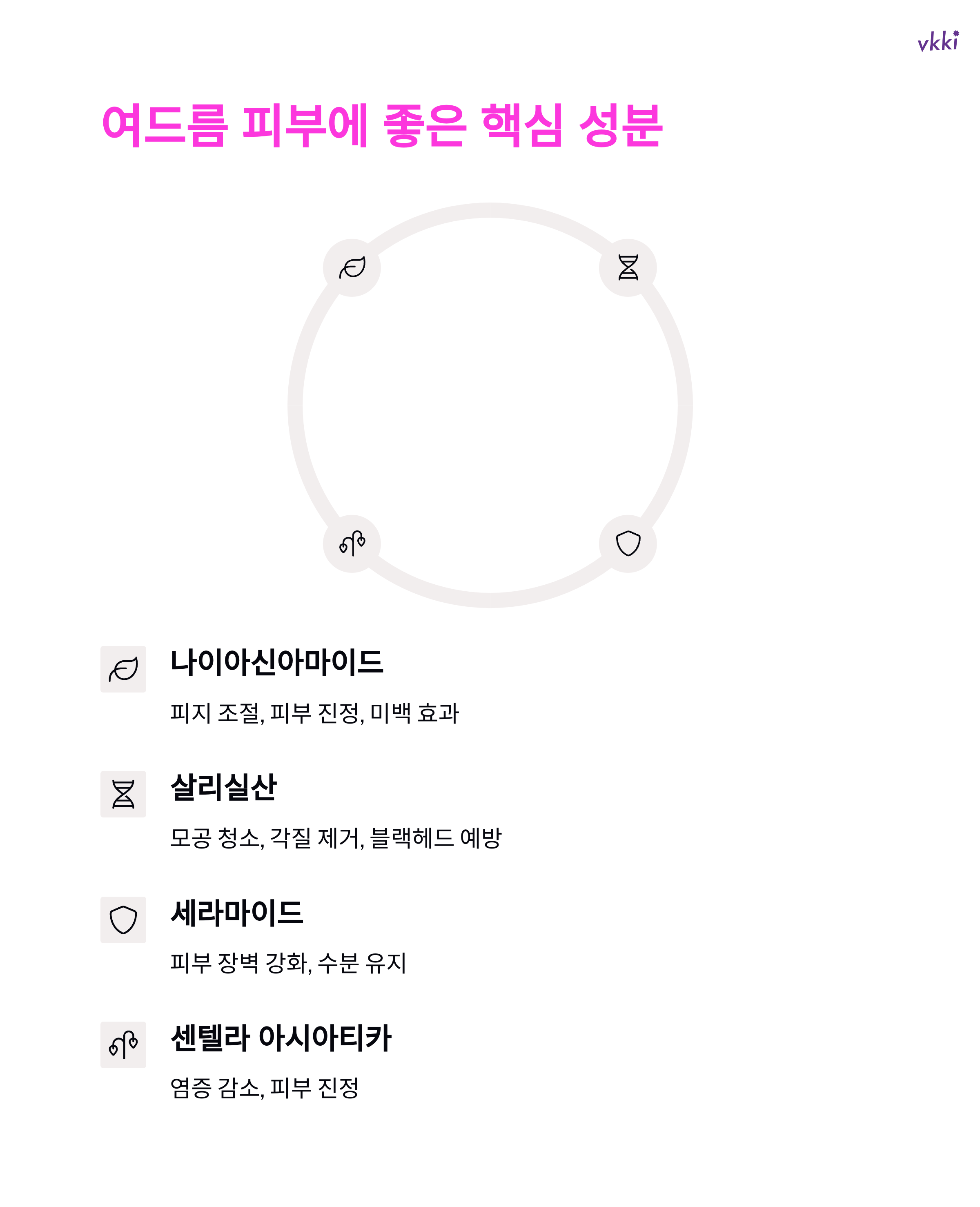 - 나이아신아마이드: 피지 조절, 피부 진정, 미백 효과